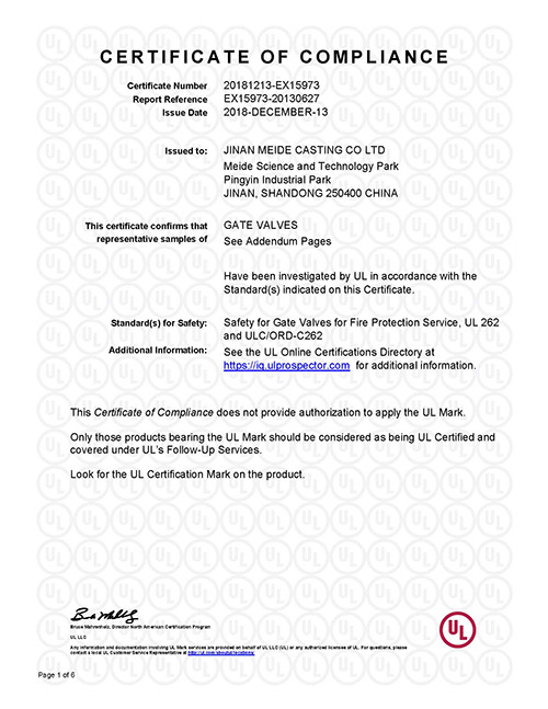 我司暗杆闸阀型号Z45XC-2 DN350-600通过UL认证