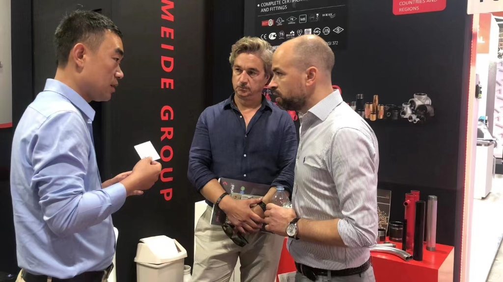 2022年06月28日-7月1日,意大利米兰暖通制冷及智能家居及卫浴展览会(MCE)在意大利国际展览中心成功举办。此次展会,玫德集团搭建了两个展位,集团展位与成员企业波兰EE公司展位,展出全系列产品,包括沟槽管件、玛钢管件、阀门、卡压管件、钢管、支吊架等,在消防、水务、燃气、热力等领域,向海外客户展示了一站式解决方案,玫德致力于为客户提供产品与方案的定制化服务,全方位展现玫德硬实力和软文化。