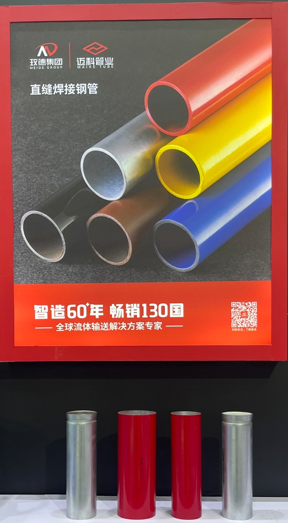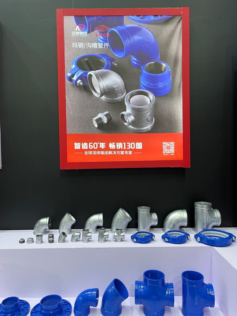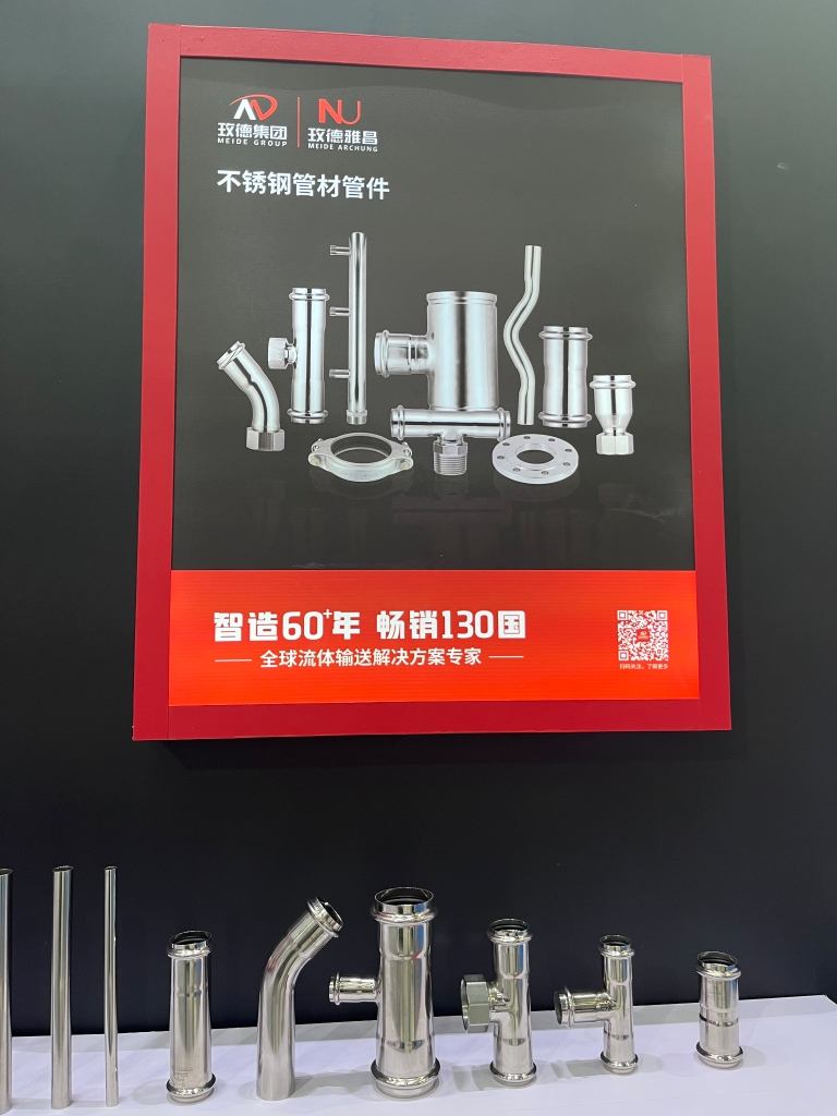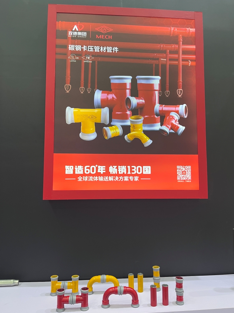 本次展会,玫德集团重点展品包含阀门、直缝钢管、不锈钢管材管件、金属软管、玛钢沟槽管件、碳钢卡压等一站式产品。