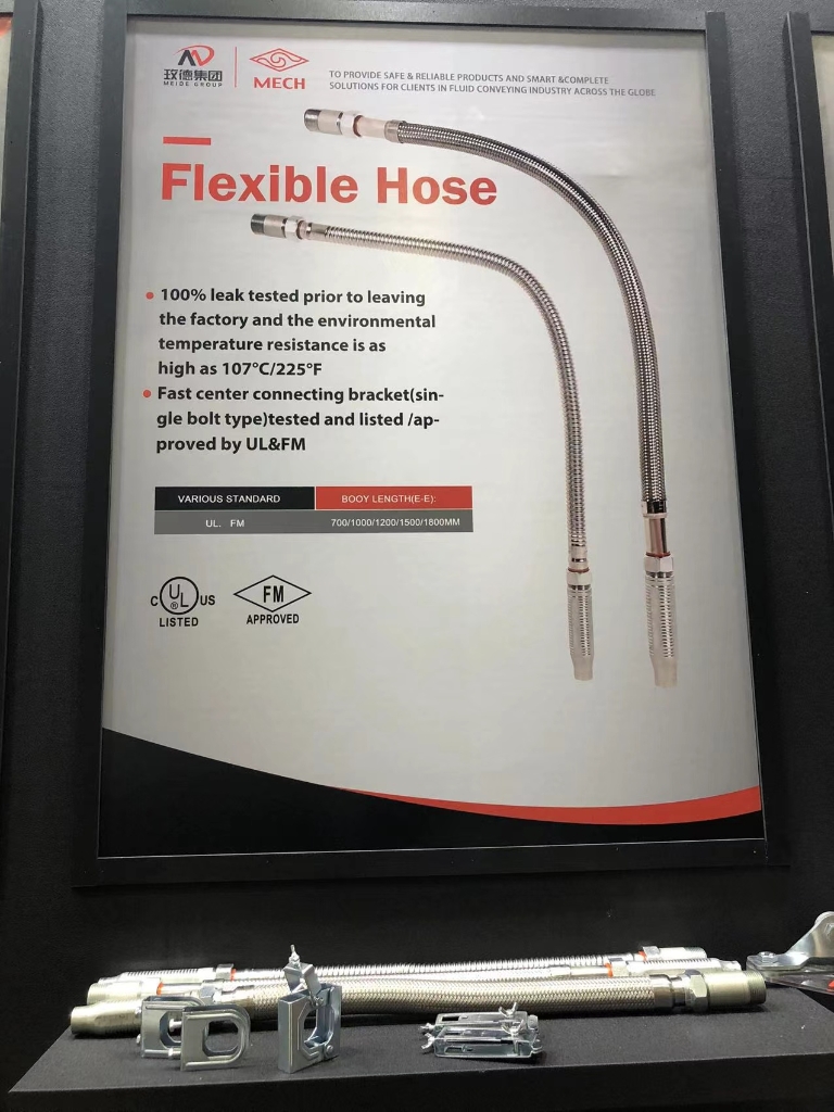 消防金属软管专业名称为消防洒水软管,主体材质不锈钢,包含不锈钢软管(即波纹管)和安装组件,用于自动喷淋系统中喷淋头与主管的连接,代替传统硬管。玫德艾瓦兹消防软管具备独特优势: