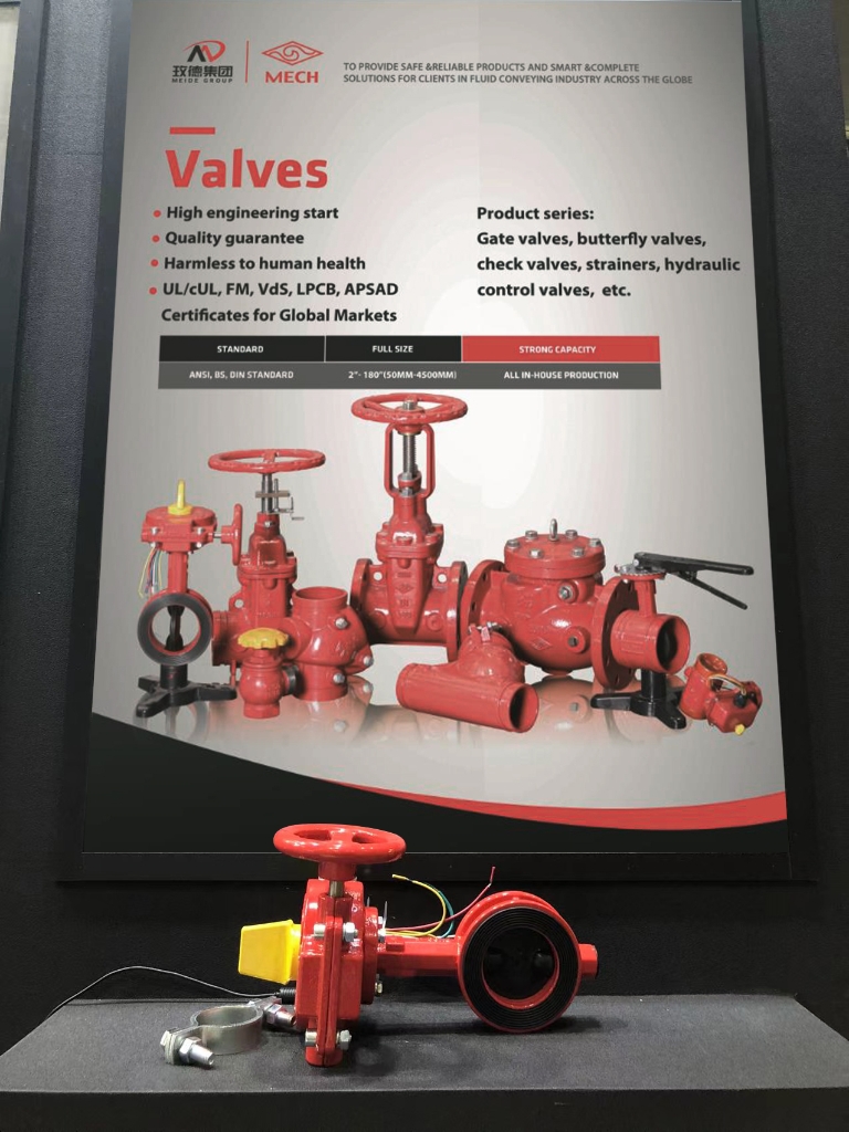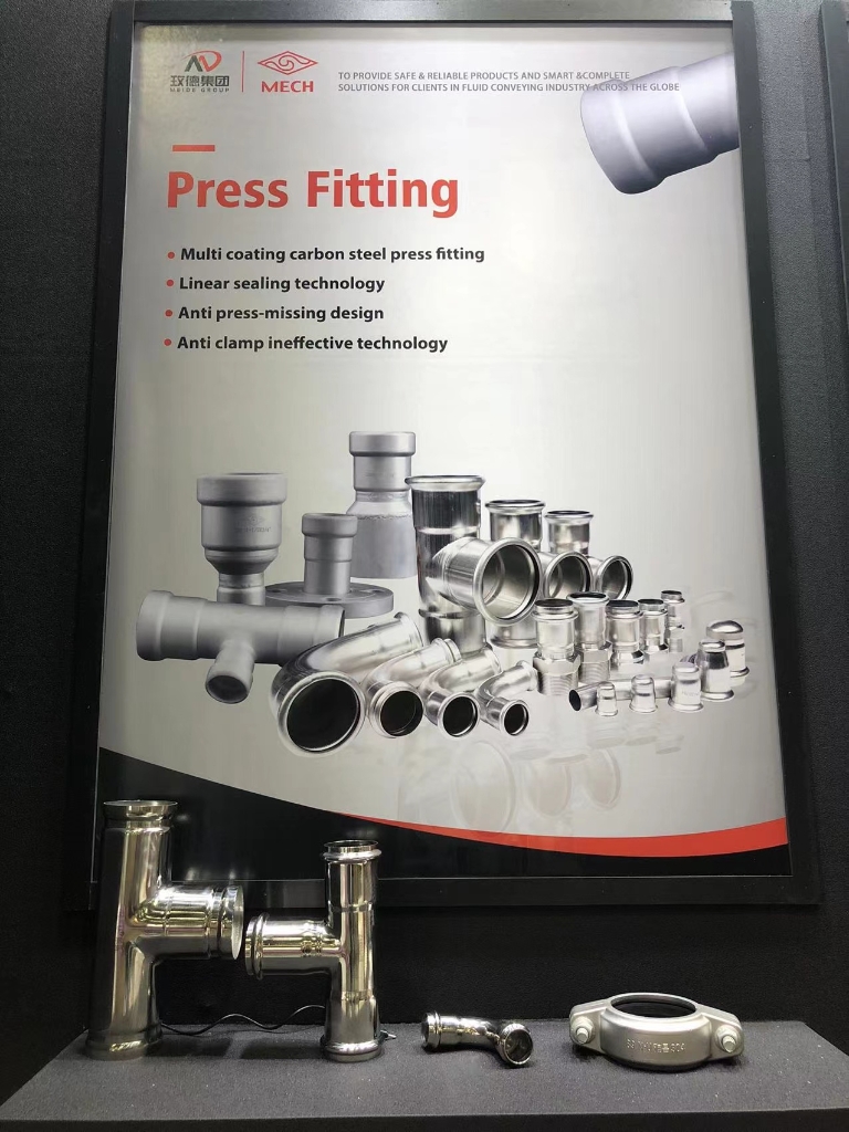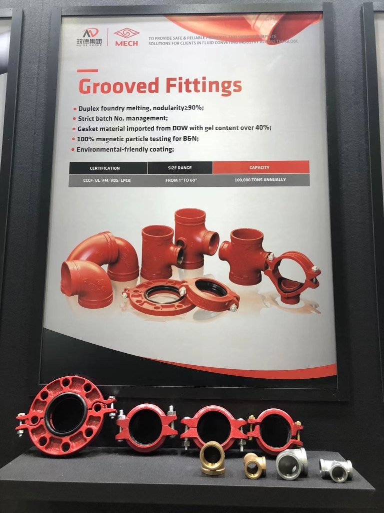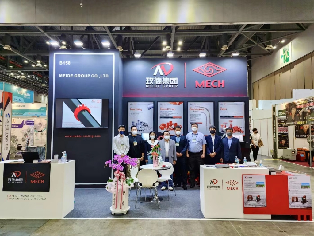 本次展会玫德展出了阀门、玛钢管件、沟槽管件、不锈钢管材管件、碳钢管件、金属软管、水表等一站式产品与解决方案。