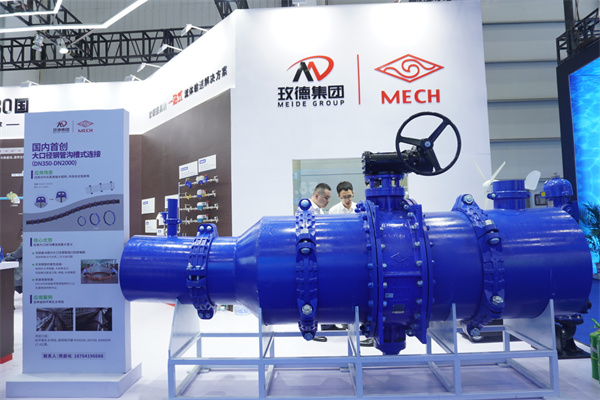 玫德自产的TPEP防腐管+玫德自主研发的大口径沟槽连接实现了钢管的柔性连接,替代伸缩节连接阀门,填补了国内空白,引领水利行业连接新趋势。