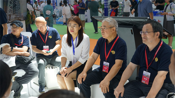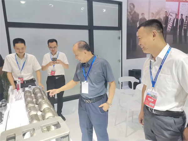 玫德集团董事局副主席李传军,济南科德智能科技有限公司总裁刘少云,玫德庚辰金属材料有限公司总裁张志义,济南科德智能科技有限公司高级副总裁张明一、刘璐在展会现场指导工作并与客户深入交流。
