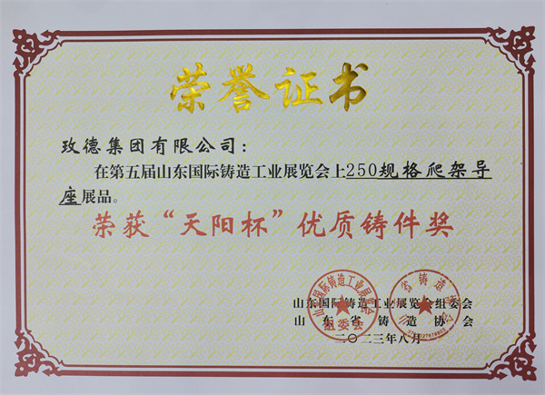 1.时博官网登录入口展品“250规格爬架导座”荣获“优质铸件奖”。