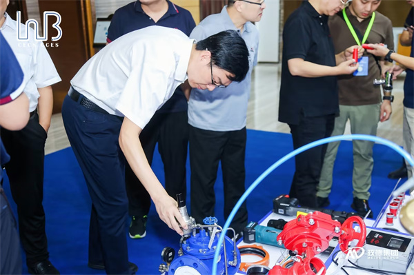 专家们先后来到研展楼集团展厅,以“工业立库+MES”为核心的“一个流”的数字化生产工厂,集消防、水务、燃气、热力、暖通、排水为一体的公建系统模拟展示区,阀门智能制造工厂、管道预制工厂、大口径管道高端智能生产工厂,以及玫德集团旗下科德智能数字化生产工厂参观交流。