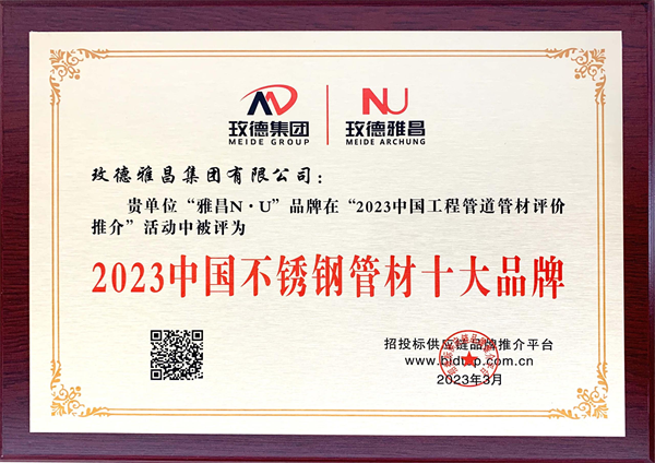 由招投标供应链品牌推介平台举办的“2023中国工程管道管材评价推介”活动历时2个多月圆满结束,在近期发布的“2023中国不锈钢管材十大品牌”榜单中,玫德雅昌品牌脱颖而出,突显了不锈钢管材在各类应用领域的显著优势。