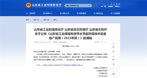 2024年2月5日山东省工业和信息化厅、山东省生态环境厅、山东省水利厅联合公布《山东省工业领域先进节水节能环保技术装备推广目录(2023年版)》,面向社会公开推广节水、节能、环保技术装备60项。其中,玫德集团入选推广目录3项,且均是解决方案类技术,展现了集团在节水节能环保领域的强大技术实力和解决方案提供能力。