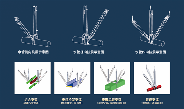 抗震支吊架是与建筑结构体牢固连接,以地震力为主要荷载的抗震支撑设施,由锚固体、加固吊杆、抗震连接构件及抗震斜撑组成。在最开始,国内对于机电设施的保护,主要承重作用,基本上没有考虑抗震设计,给系统安全带来很大的隐患。