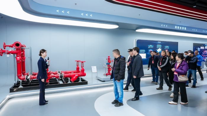 玫德集团高级副总裁、建筑BG总裁杨海宁在主论坛演讲中介绍,玫德集团依托覆盖140多国的市场网络、遍布全球的智能制造基地与本地化服务体系,专注于为全球建筑安全提供从消防给水到完整管网的智能、可靠解决方案,致力于以卓越产品力与数字化能力守护城市生命线,提升建筑韧性与安全。